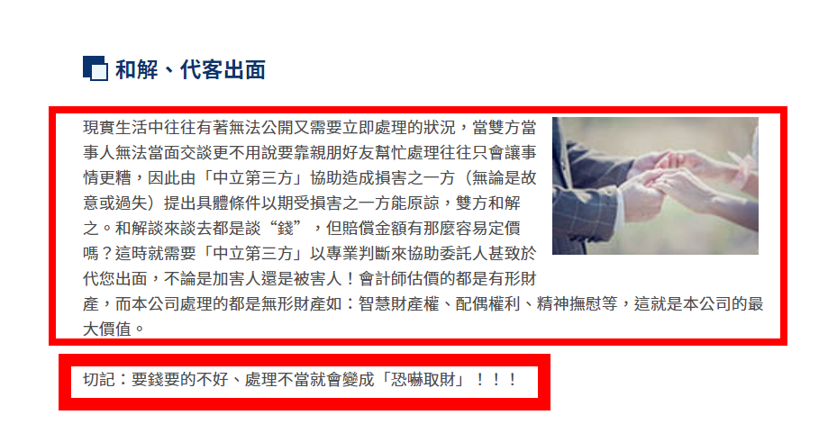 一統國際商業顧問 “抄”棒的! 1) 文字可以抄襲,專業能力無法復刻 2) 一統商務顧問網站 創立時間:109年 3) 簡敏丞博士網站創立時間:108年 3.1) ※簡敏丞博士的官方網站製作時間比抄襲業者早了一年多 4) 相似度99%!只差未複製簡敏丞博士這個招牌! 文字可以抄襲,專業能力無法復刻 這就是人人害怕徵信的原因,我也害怕!強大的徵信業者龍頭,網站上內容竟然可以完全照抄!只有把簡博士三個字刪除,這樣的商業品質真的能帶給委託人專業的服務嗎? 一統商務顧問網站 創立時間:109年 簡敏丞博士網站創立時間:108年 ※簡敏丞博士的官方網站製作時間比抄襲業者早了一年多 ※連簡敏丞博士主筆的口吻也一併照抄,只改了創作者簡敏丞博士的名號,連最後一句slogan也挪為己用。 ※成立不到一年的協議協商公司,前身為徵信業者,試問如何有近十年的協商經驗?我們認為,沒有無法解決的案件,只有找不到對的人幫助,各位委託人還請睜大您雪亮的雙眼,選擇最專業最有保障的服務。 標題內容:一統國際商務顧問有限公司-商務、婚姻、法律、協議、協商、和解、蒐證、調查暨各類專業人士團隊服務內文:本公司專門處理商務、婚姻及法律各類非訴訟案件 (如老闆或投資人要實際參考的盡職調查、中國大陸企業信用調查報告、其他各類協議、協商、和解、蒐證、調查)。 標題內容:簡敏丞商務顧問-商務、婚姻、法律、協議、協商、和解、蒐證、調查暨各類專業人士團隊服務內文:時間就是金錢,本公司專門處理商務、婚姻及法律各類非訴訟案件 (如老闆或投資人要實際參考的盡職調查(Due Diligence,簡稱 DD)、中國大陸企業信用調查報告、其他各類協議、協商、和解、蒐證、調查)。您的信任+我們的中立專業協助= 節省您寶貴時間及金錢,全程保密不公開 (本公司最注重委任方公司及個案隱私) + 中立專業的第三人 (本公司確認核實國內外事務所之法律文件,並仔細聆聽並中立辦理各類糾紛、和解、協商) = 以本公司各專業團隊來節省您或貴公司寶貴的時間。 相似度99%!只差未複製簡敏丞博士這個招牌! Post Views 瀏覽次數 : 156